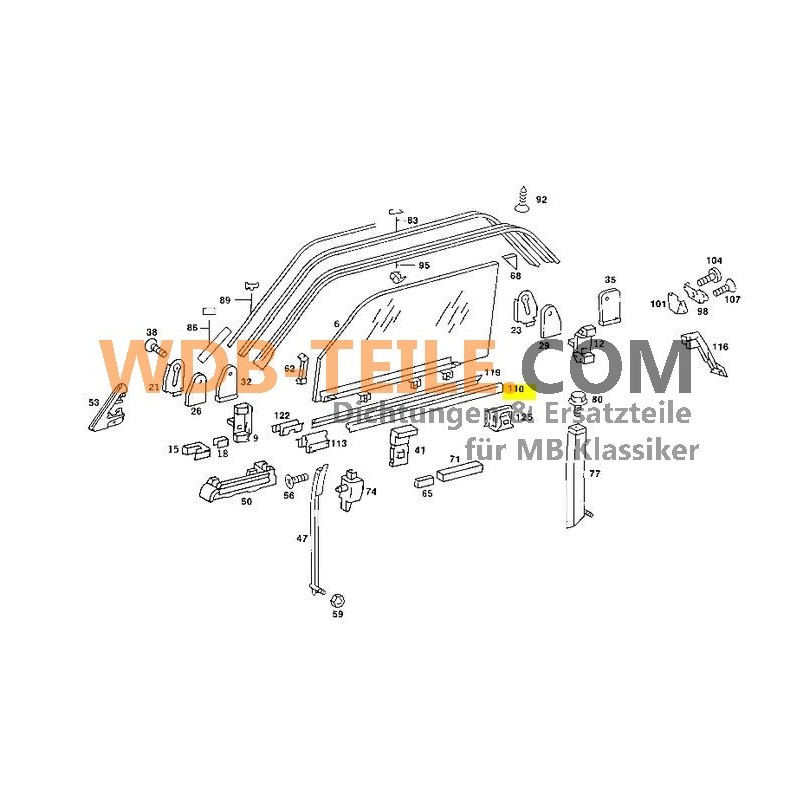 Tætningsskinne døre foran indvendigt vinduesskakt, passer til Mercedes-Benz W123 C123 CE CD Coupe A1237250565