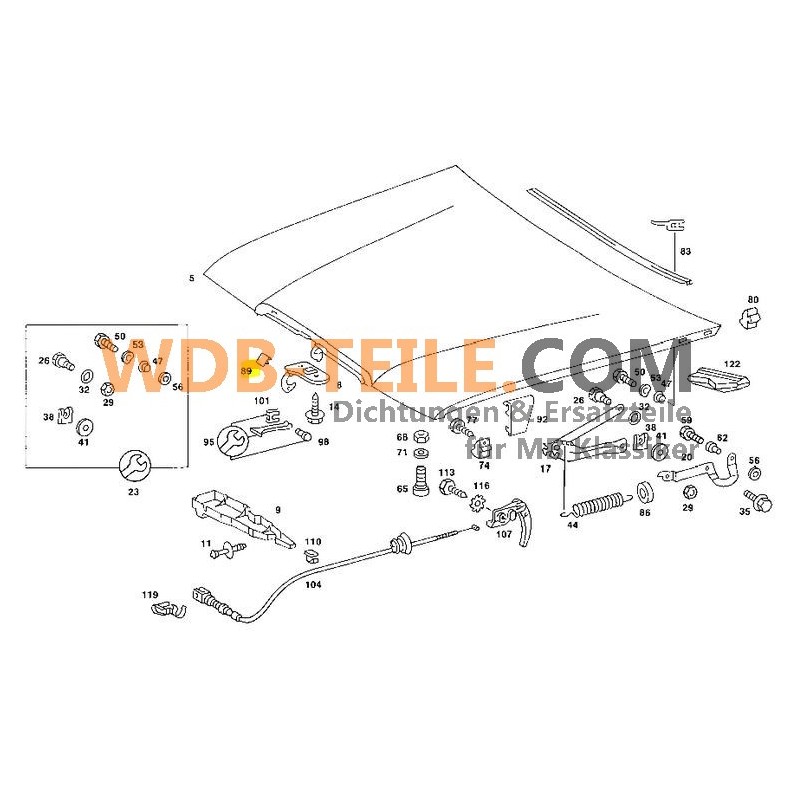 Original motorhjelmafviser til Mercedes Benz W123 / sedan / limousine / S123 / T-model / C123 / Coupé / CE / C samt W201 / 190E / 190D.