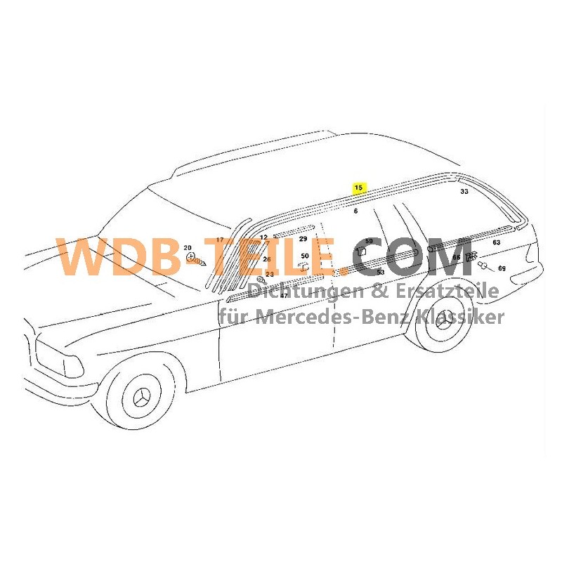 Σετ (2 τεμάχια) κάλυμμα/προφίλ από καουτσούκ για λωρίδα βροχής ( 4 μέτρα σε ένα κομμάτι) . Από την κολόνα του μπροστινού τοίχου στην πίσω κολόνα. Μπορεί να χρησιμοποιηθεί για την πλευρά του οδηγού και του συνοδηγού. Η μπάρα βροχής είναι ελαφρώς μεγαλύτερη από την αρχική και πρέπει να μικρύνει κατά την εγκατάσταση.