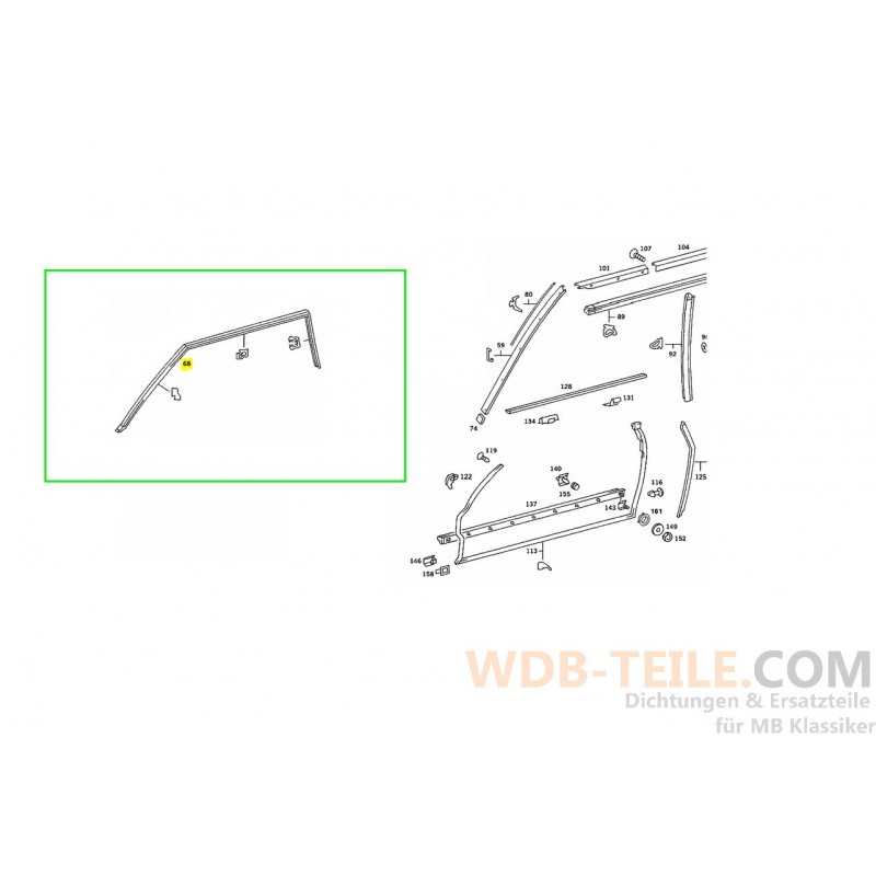 Seal frame side window to roof frame left suitable for Mercedes-Benz W107 C107 SLC Coupé A1076700130 A1077201178