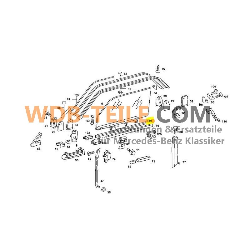 Riel de sellado externo adecuado para Mercedes Benz W123 Coupé CE/CD, W107 SL SLC, R107 , C107 , W126 SEC , W114 C/CE. Ya sea para el lado del conductor o del pasajero.