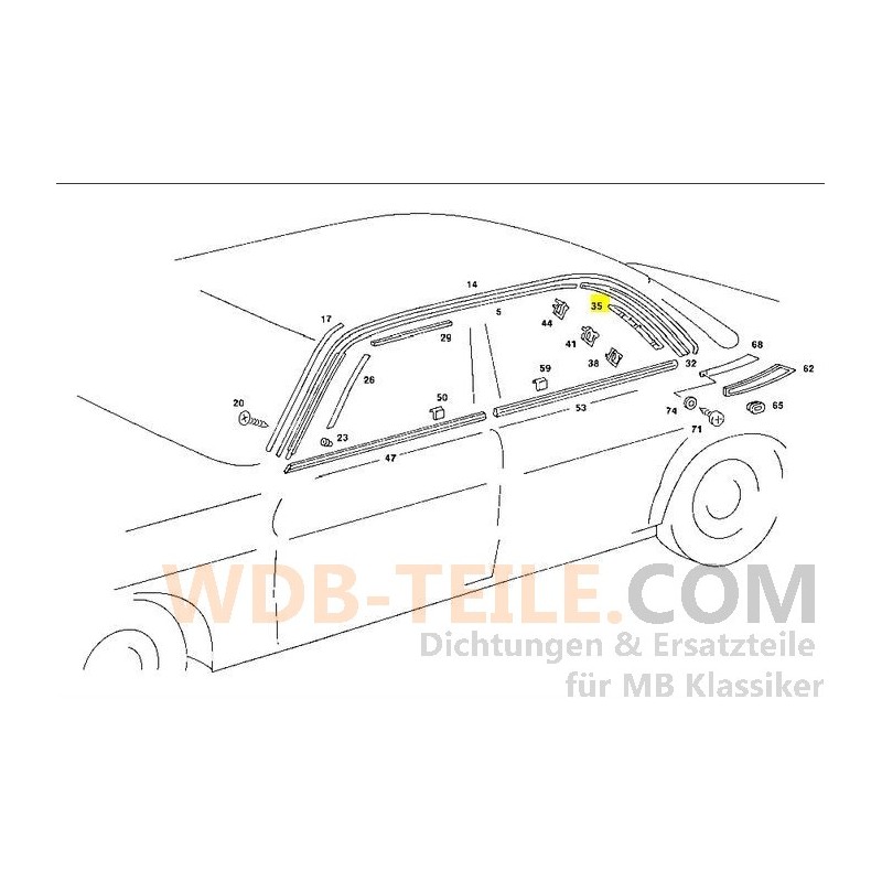 Moldura decorativa trasera derecha compatible con Mercedes-Benz W123 Berlina, marco de estanqueidad de la puerta, junta