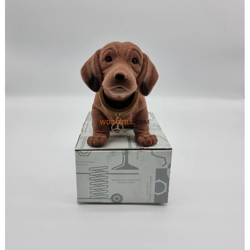Pienen koiran viehättävää muotoilua täydentää kullanvärinen kaulus, jossa on messinkinen Mercedes-tähti. Sopii useisiin Mercedes-Benz-malleihin. Ihanteellinen klassisen autosi tai klassisen autosi hattuhyllyyn.