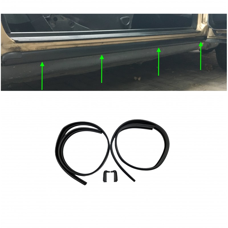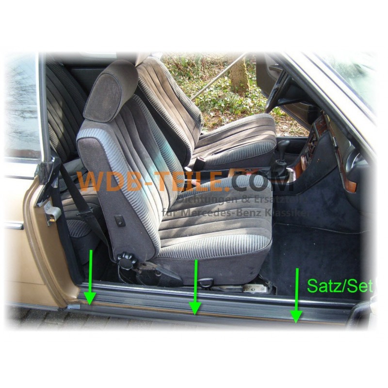 Aseta (vasen ja oikea) kansikorkit ja kynnyksen tiivisteprofiili. Sopii W123 C123 Coupe CE CD kuljettajalle ja matkustajan puolelle
