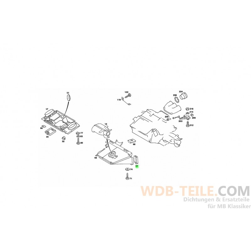Vasemmanpuoleisen ilmakanavan (tuuletus/ilmakanava) tiiviste sopii Mercedes W107 C107 SLC Coupéin.
