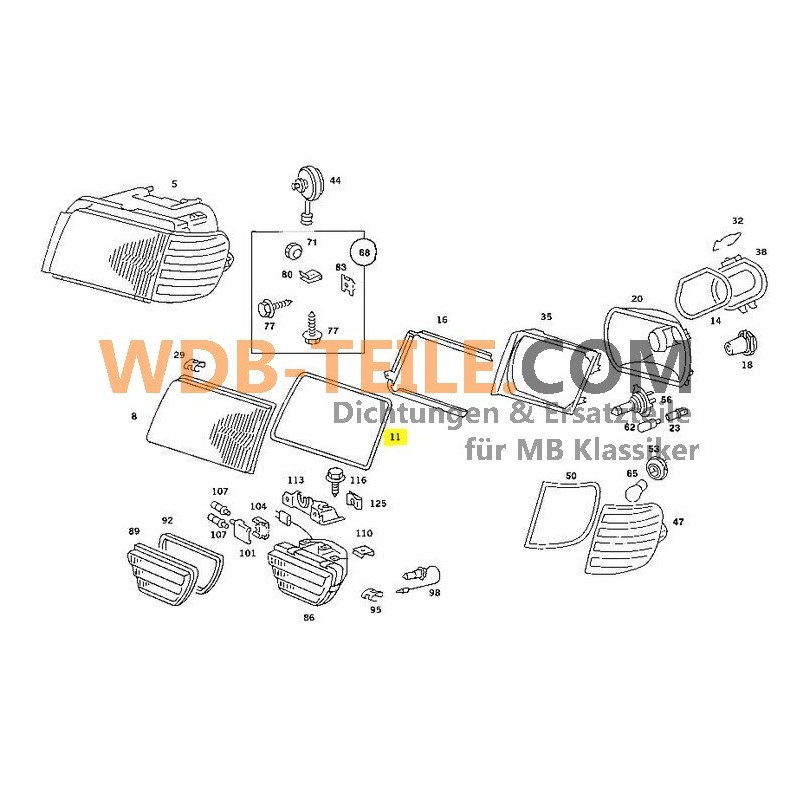 Joint d'étanchéité de phare adapté pour Mercedes W126 Classe S SEC Coupé A0018261480