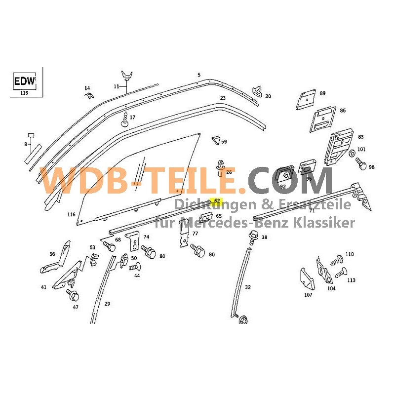 Barre d’étanchéité joint compatible avec Mercedes W123 C123 CE CD Coupé W107 SL SLC R107 W126 SEC W114 CE A1237250265
