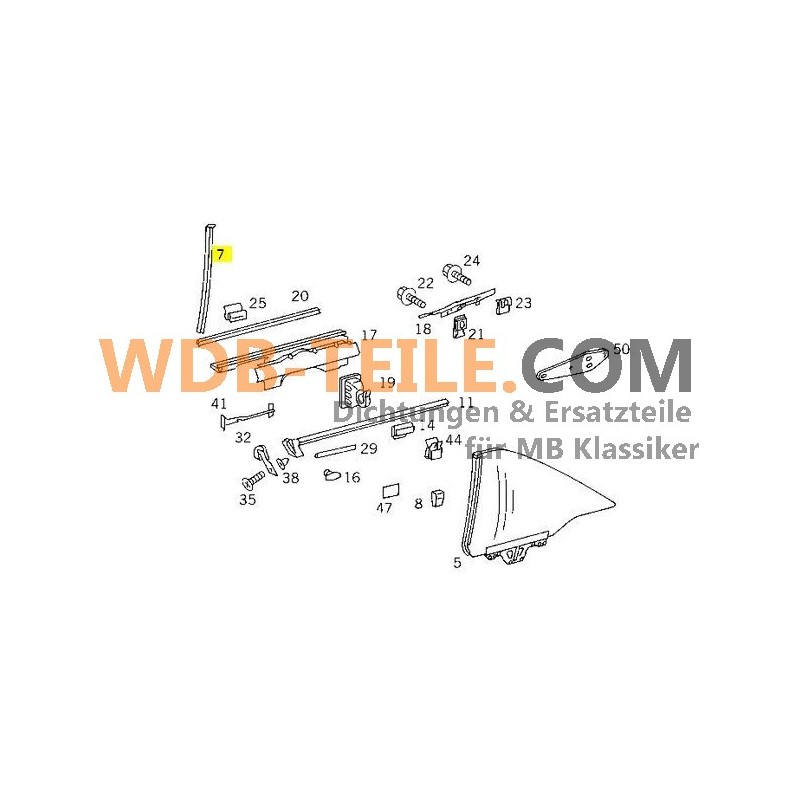 Joint vertical côté conducteur et passager (gauche et droit) des vitres arrière d'un W124 C124 Coupé CE et A124 Cabrio.