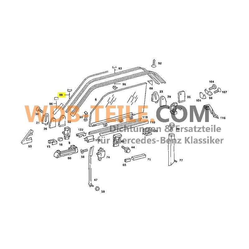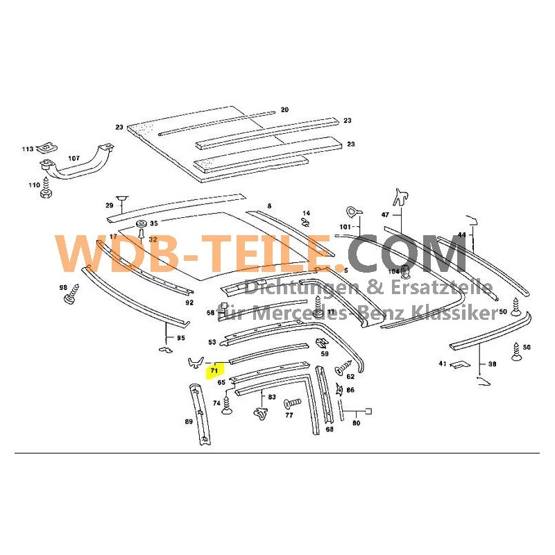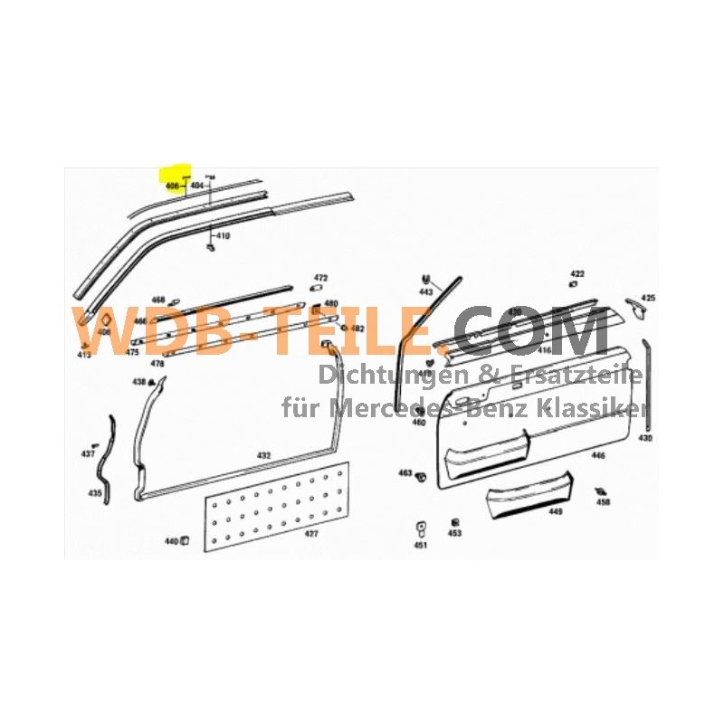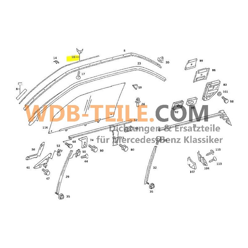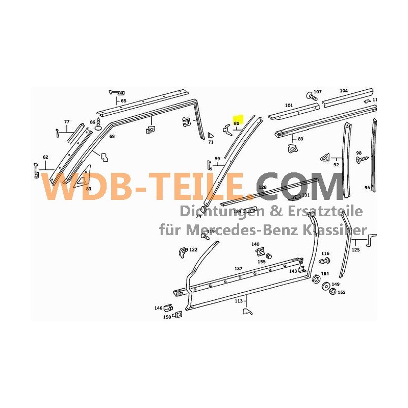 5 méteres gumibetét különféle Mercedes-Benz modellekhez. Többek között a W123 Coupéhoz a váltakozó áramú oszlop krómcsíkjai alá szerelhető.