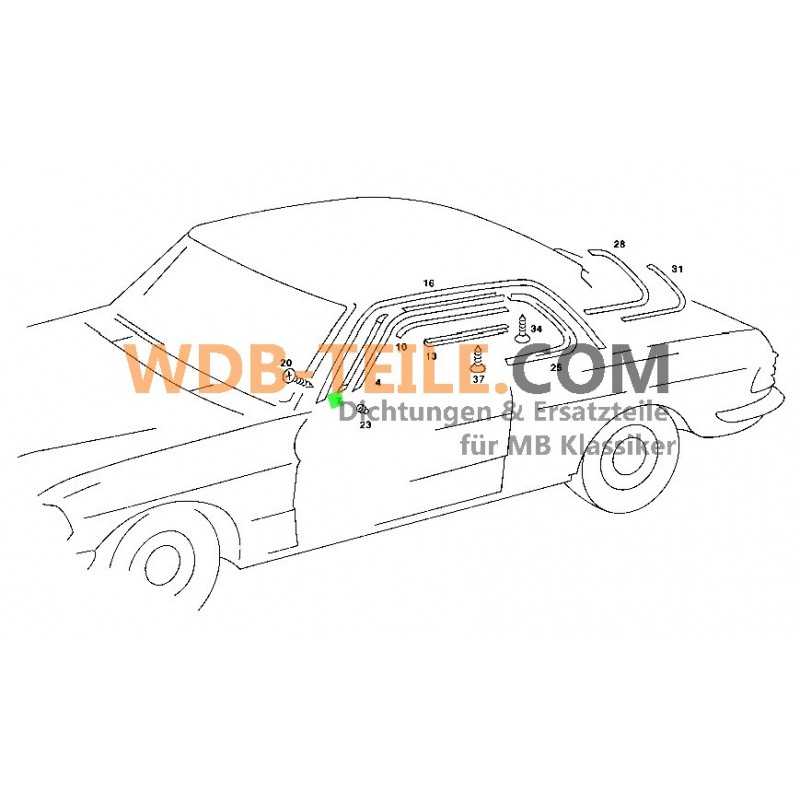 Guarnizione in gomma tra il parapioggia e il montante della parete anteriore (montante A) a destra. Adatto per Mercedes-Benz W123 Coupé CE.