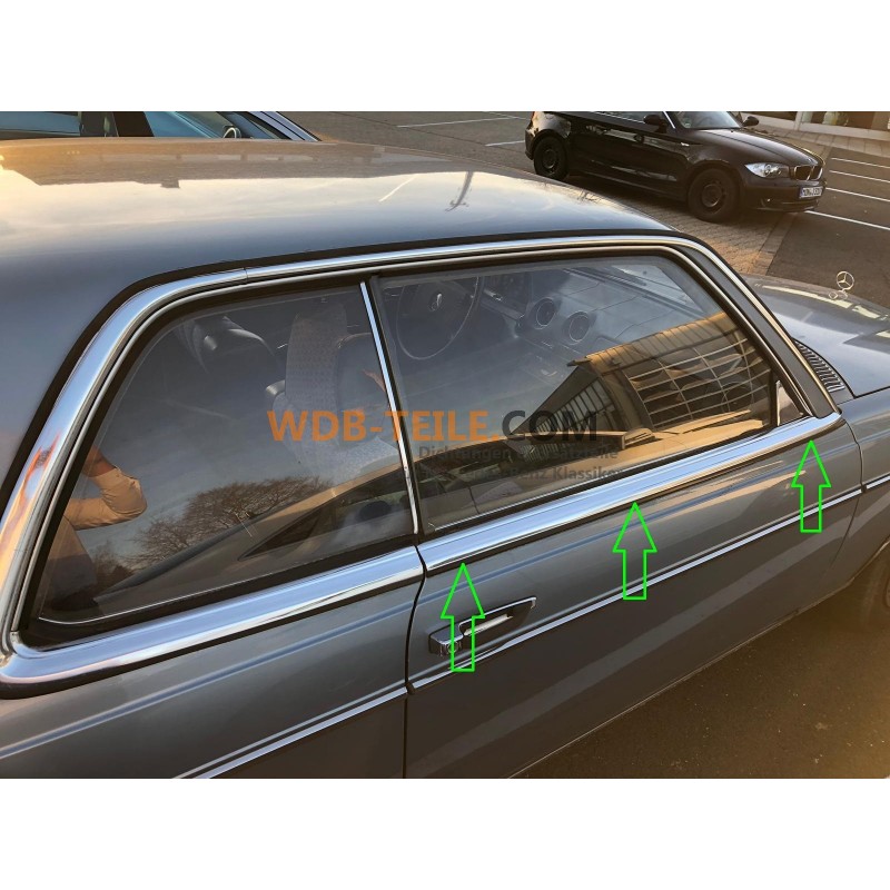 Striscia antipioggia sulla modanatura della portiera del passeggero a destra. Adatto per Mercedes-Benz W123 C123 CE CD Coupé gocciolatoio in gomma striscia cromata