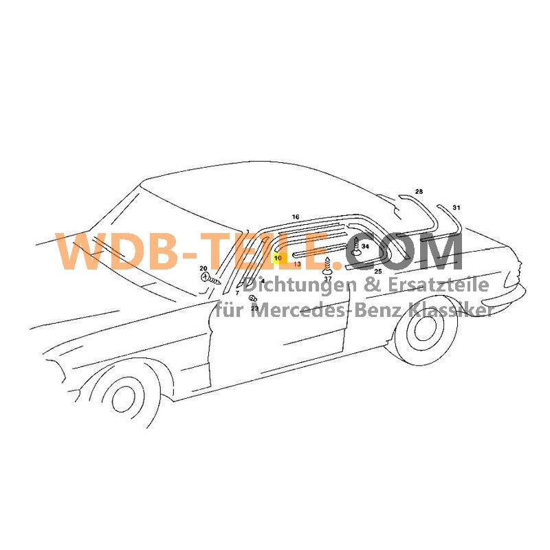 Ricambio originale Mercedes-Benz di vecchio stock. Guarnizione per la fascia cromata del montante AC. Installato in diversi modelli.