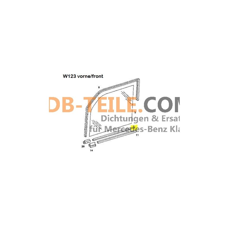 • Past op W123 sedan voor en achter buiten vanaf 09/79 . Moet op lengte worden gesneden voor de achterdeur.