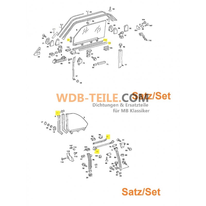 - Komplet (2 uszczelki) uszczelka pionowa szyby bocznej tylnej pasujący do Mercedes W123 C123 CE CD Coupé A1236730024