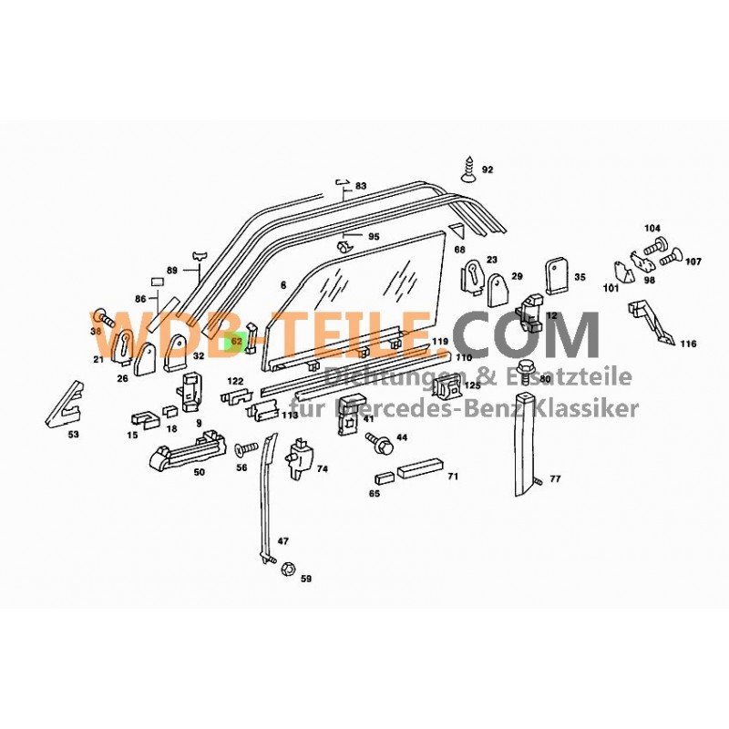 Zestaw - uszczelka, uszczelnienie prowadnicy szyby bocznej, prowadnica szyby pasuje do Mercedes W123 C123 CE CD Coupé