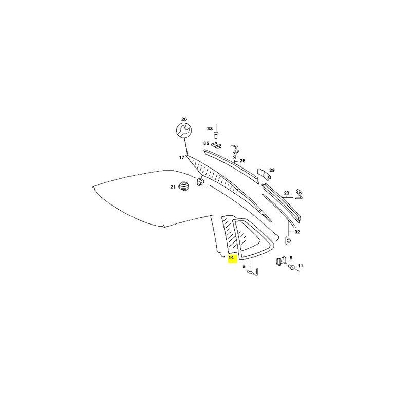 Oryginalna /nowa szyba kryształowo przeźroczysta lewa do dachu sztywnego W107 SL Coupe A1076730110.
