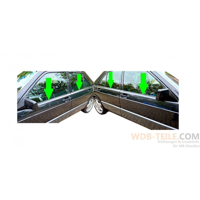 Kompletny zestaw (4 sztuki) zewnętrznych listew uszczelniających pasujących do samochodów Mercedes Benz W201 / 190E / 190D.