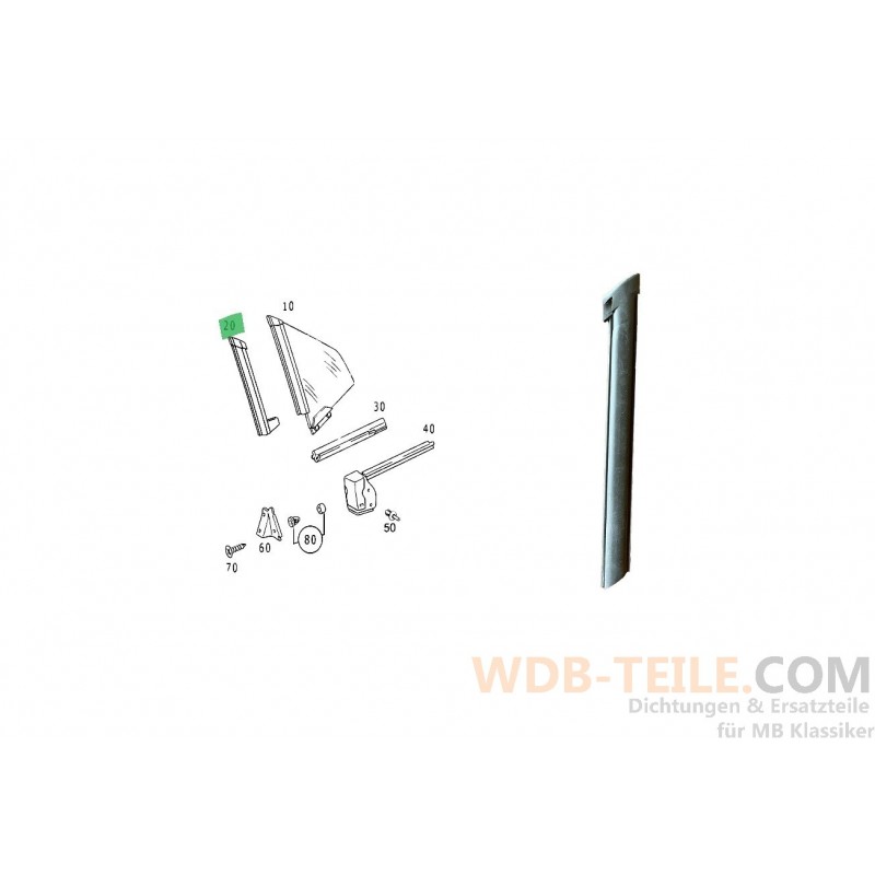 Vedação/vedação vertical para o lado do passageiro (direito) do vidro traseiro de um R170/SLK .