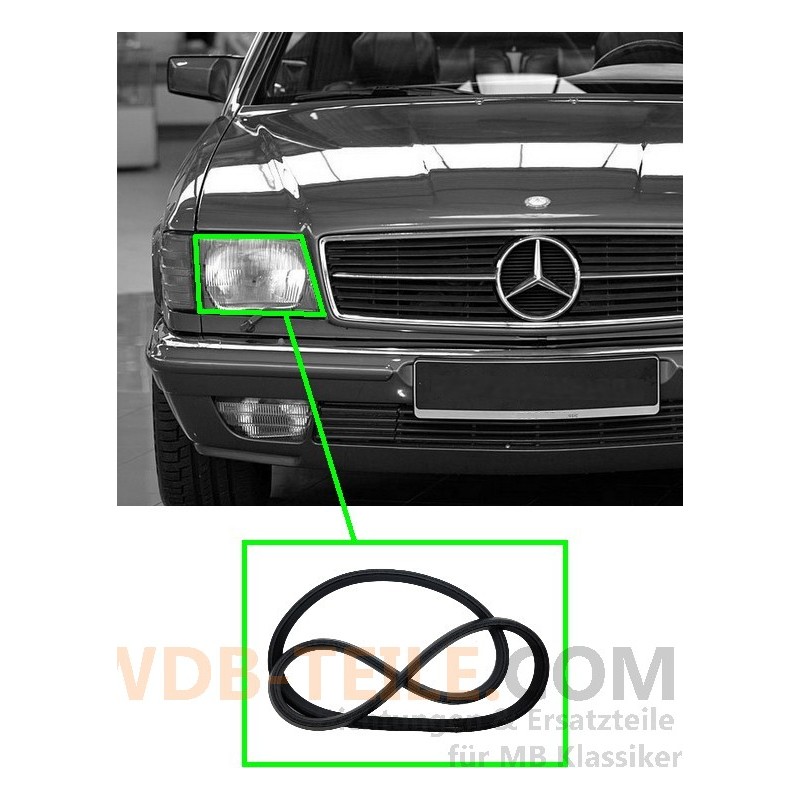 Vedação para o vidro do farol (difusor) de um Mercedes-Benz W126 SEC Coupe .