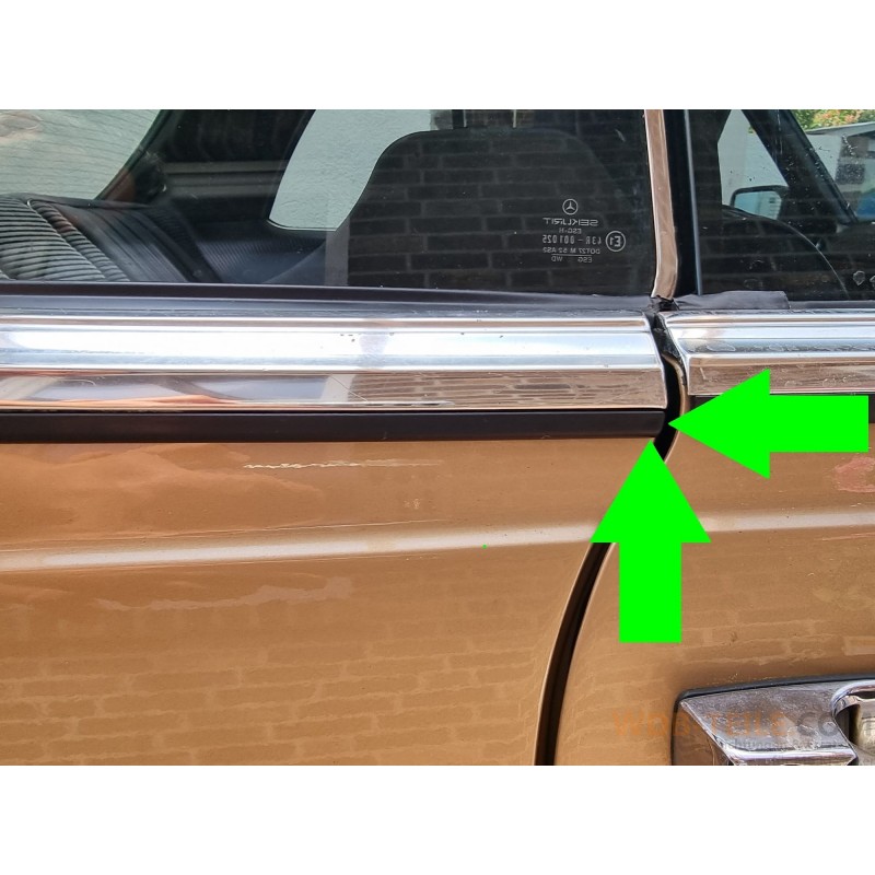 Banda de ploaie Mercedes Benz pe bandă cromată / bandă decorativă pe stâlpul din dreapta și din spate. Potrivit pentru Mercedes-Benz W123 C123 CE CD Coupé