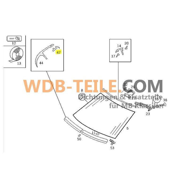 Underlag Gummiunderlag Vindruta passande för Mercedes-Benz W124 S124 C124 CE Coupé T-Modell TE A0019872460