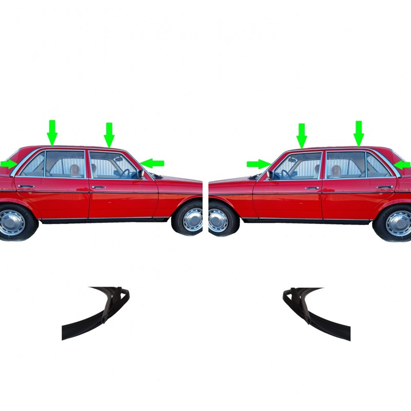 Set (2 adet) – Ön direk sütunundan arka sütuna kadar olan krom çıta (A-C sütunu) üzerindeki yağmur kanalı kaplaması, W123 Sedan